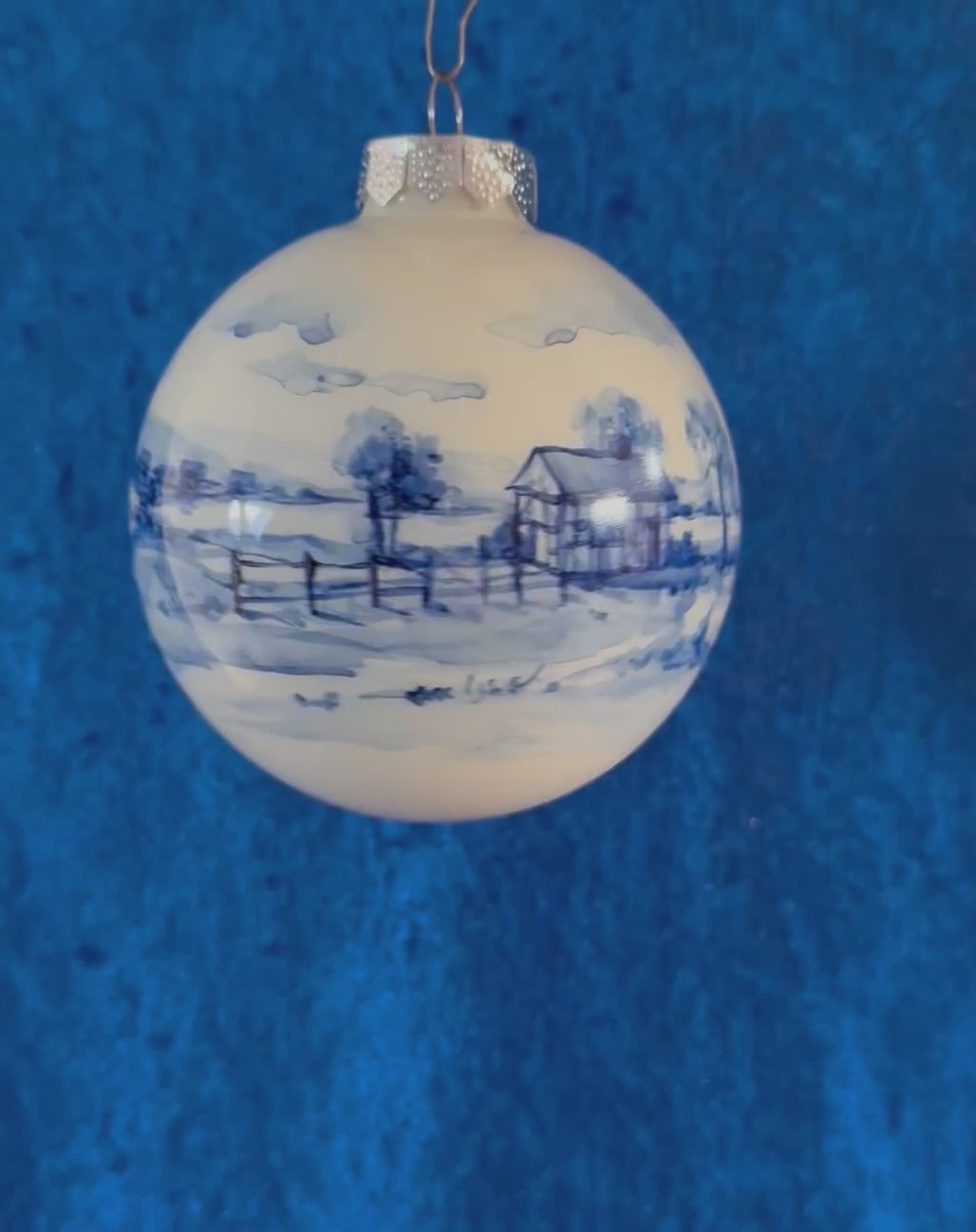 Exklusive Weihnachtskugel „Hof in den Bergen“ – Handbemaltes Unikat nach Delfter Art