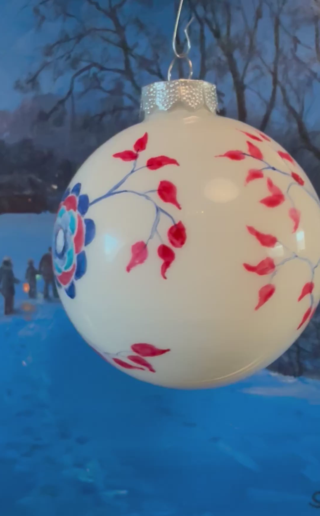 Hängen Sie ein kunstvolles Statement an Ihren Weihnachtsbaum mit dieser edlen Tannenbaumkugel in weiß. Von Hand bemalt mit einem detailreichen blauen Paradiesvogel, vereint dieses Stück festliche Eleganz mit avantgardistischem Design. Jede Kugel ist ein Unikat – mit höchster Sorgfalt und künstlerischer Finesse gefertigt.